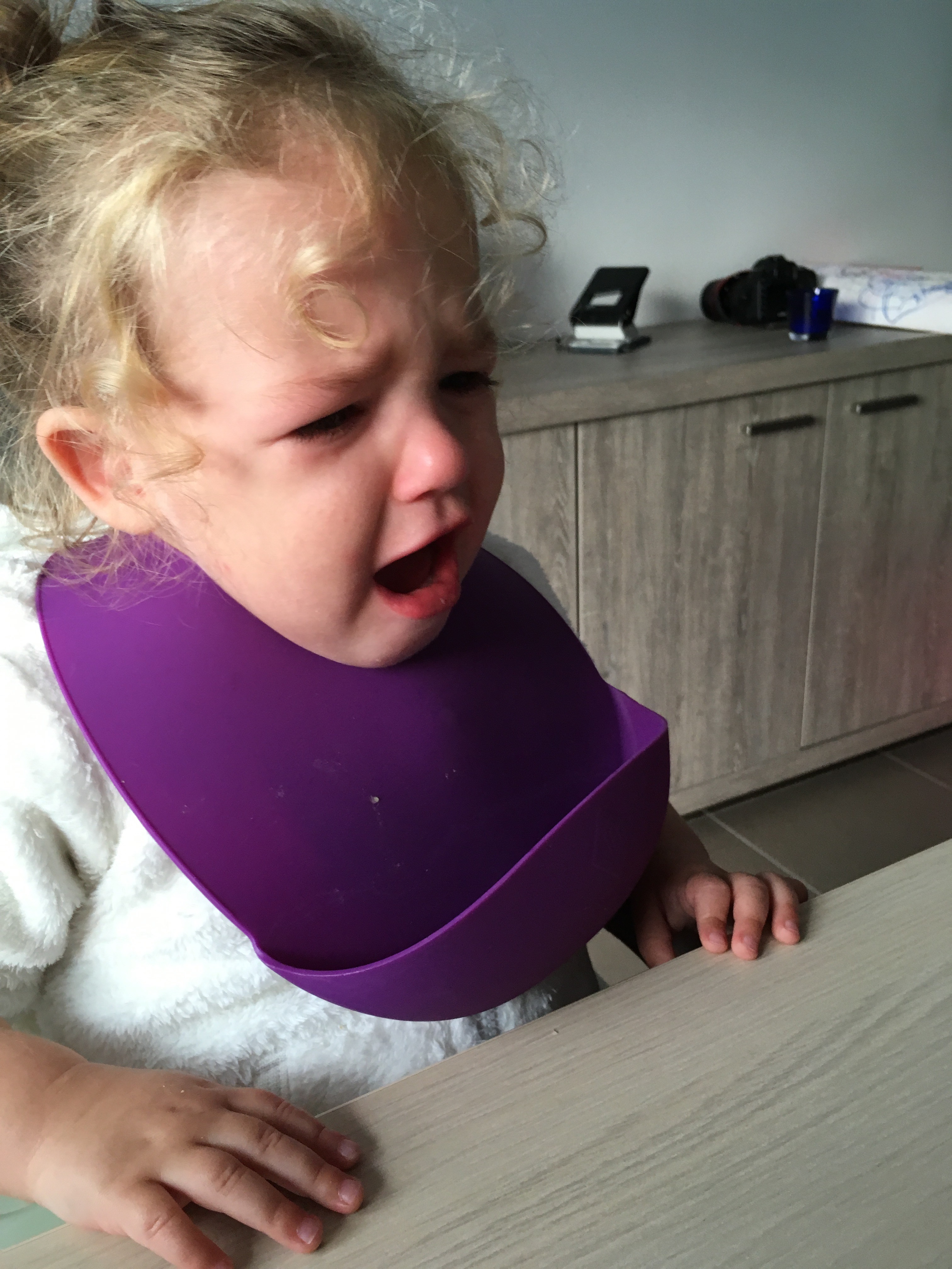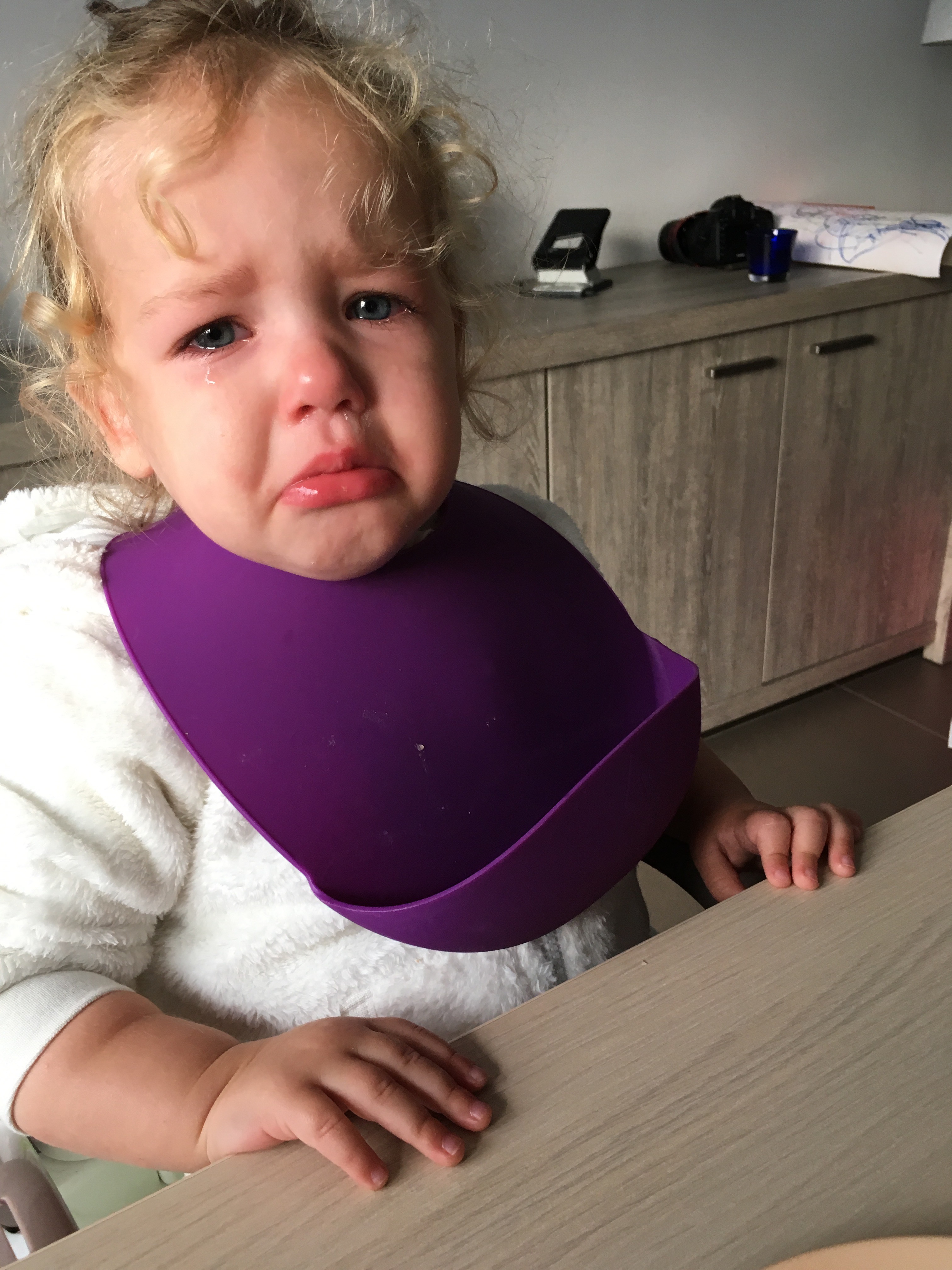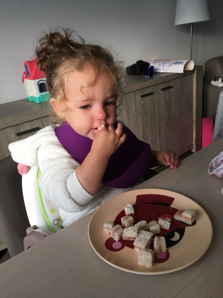 Zoals gisteren. Mama had een boterham gemaakt en die was ik flink aan het opeten. Maar ik zag dat ze vleesje aan het snijden en was en natuurlijk wou ik daar graag een stukje van. Met veel traantjes als gevolg.. Want ik wou m’n boterham niet meer eten.