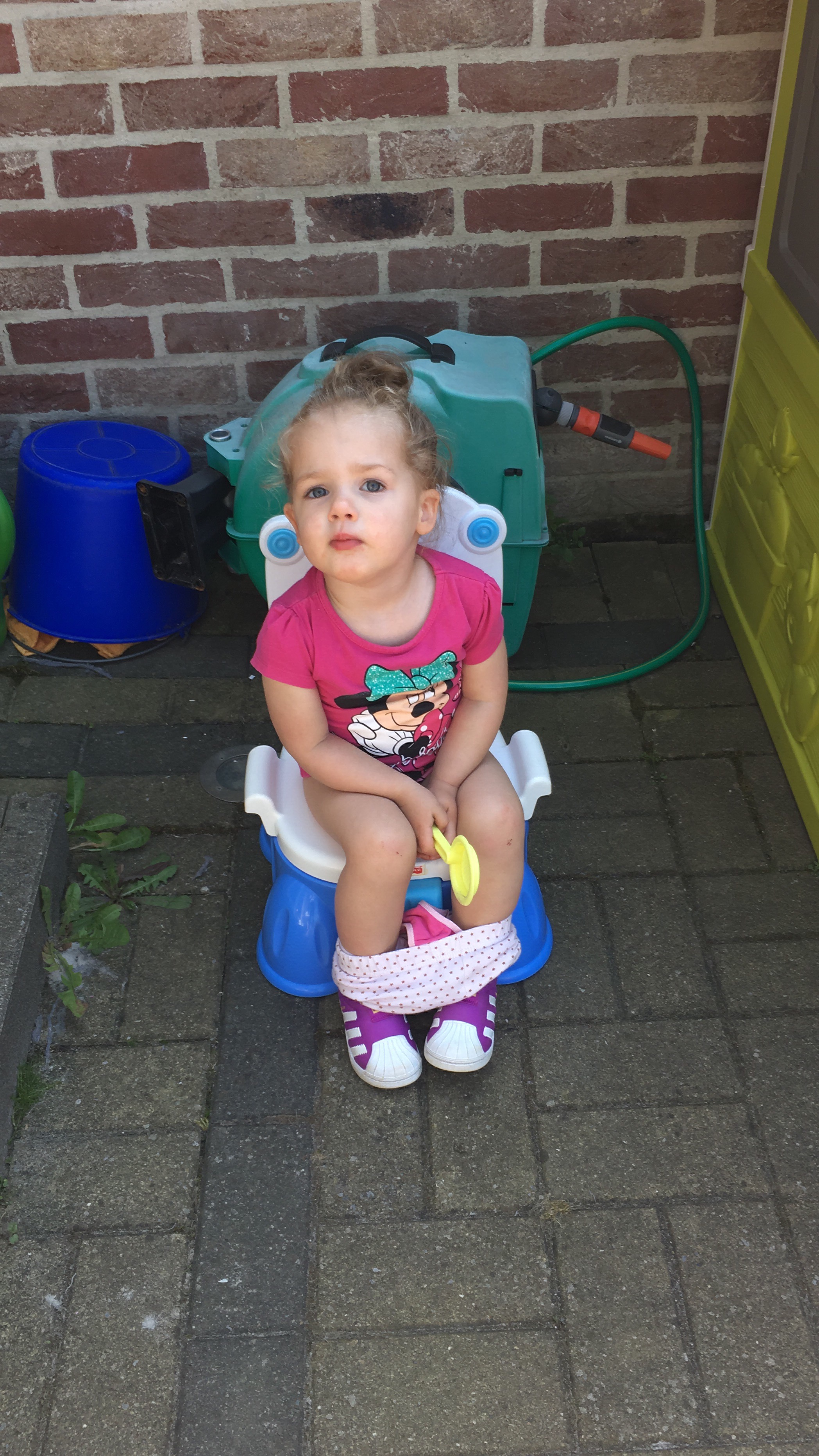 Eind april begonnen met op het potje gaan en pampertje uit te laten. En de pampertjes blijven nu zelfs door de dag uit! Af en toe nog wel eens een klein ongelukje, maar dat is omdat ik te koppig ben om dan op het potje te gaan 😆